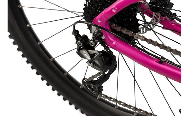 Výbavu modelu Thorr Base W dále doplňuje pohon Shimano Alivio 1x9, hydraulické brzdy Tektro HDM-285 a odpružená pružinová vidlice SR Suntour XCT 100 mm.